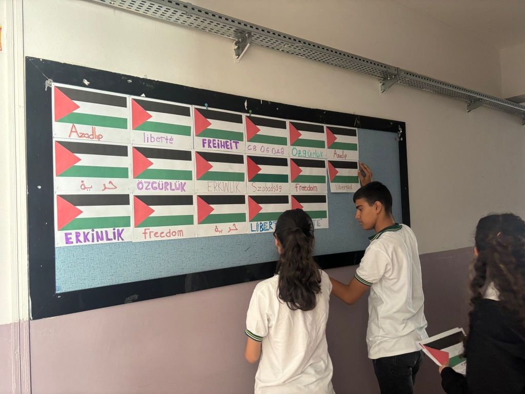 Millî Eğitim Bakanı Yusuf Tekin'in imzasıyla 81 ile gönderilen yazı doğrultusunda, tüm okullarda eş zamanlı olarak öğrencilerin katılımıyla "Filistin ve Gazze" temalı farkındalık etkinlikleri gerçekleştirildi.
